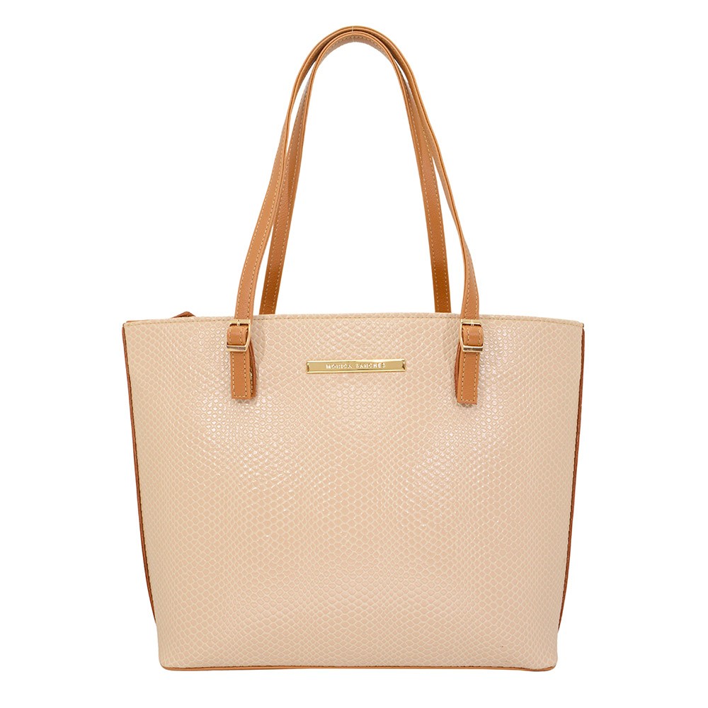 Bolsa REF-3054 confeccionada em material sintético, conta com padronagem em tons contrastantes ao longo da superfície